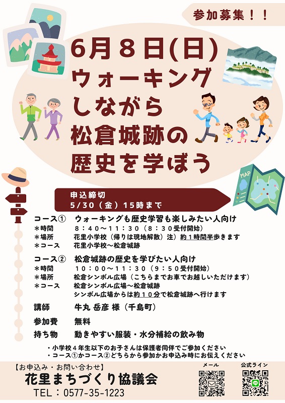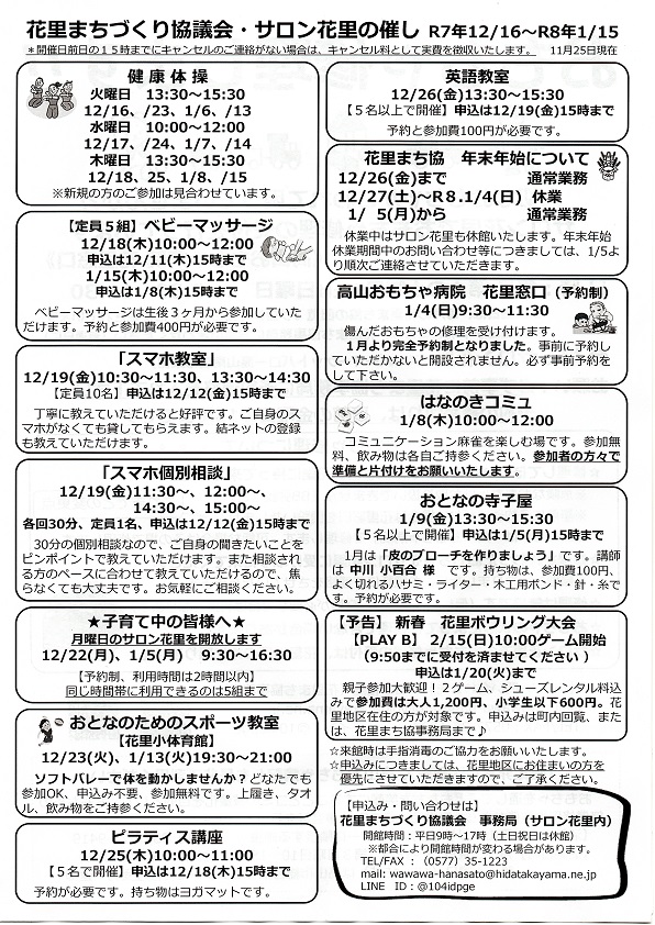各種事業のお申込みやお問い合わせは花里まち協公式ラインもしくは事務局(35-1223)