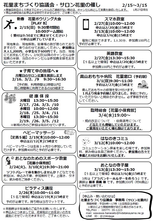 場所:サロン花里(13時30分~15時30分)