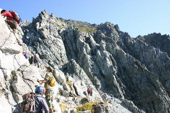 | (9月19日)立山駅近くに自動車を置き、ケーブルカー、バスを乗りついて室堂に到着する。下界は、曇りだったが、室堂は雲の上でよく晴れている。 地獄谷を通過して雷鳥沢に着く。ここから剣御前小屋に向けて、直登コースを行く。登り口の看板によると、この連休中、小屋は予約以外泊まれないようだ。松田さんは疲れた様子。天気は快晴。巻雲が出ている。青空とオレンジ色の草原の対比がきれいだ。 剣御前小屋で少し休んで、剣沢へ降りる。剣沢幕営地が空いていないことが心配だったが、何とかテントを張れる。正面には剣岳が大きい。夜、テントから出ると、星空がきれいだ。寒くなってきたのでカッパを着て寝る。 (9月20日)朝6時に出発し、剣山荘から登り始める。だんだん登山者が列になって歩く。前剣を越えると、とうとう渋滞になる。松田さんは、途中で戻りたい様子で、弱気になっている。急峻な岩場を鎖を頼って登る場面が多くなる。天気は快晴。剣沢幕営地も見える。いよいよカニの縦ばいを登る。ボルトを打ち、鎖が張ってあるので、足場はしっかりしている。しかし、後ろに迷惑にならないように、落石に気を付けながら必死でよじ登る。 早月尾根と合流し、しばらく行くと、祠のある山頂が待っていた。たくさんの人が交互に写真を撮っている。松田さんと、三等三角点のところで乾杯する。360度の大展望だ。白馬、五竜、鹿島槍、八つ、南アルプス、富士山、槍、乗鞍、笠、黒部五郎、白山、そして富山平野のパノラマが広がる。松田さんも満足のようだ。 山頂を辞し、今度はカニの横ばいを降りる。鎖と足元のボルトや岩角を頼りに、横に移動する。足元が見えないので、緊張感がある。そのあと今度は梯子になる。松田さんは、特に梯子が苦手なようだ。前の若い女性の足がすくんでしまい、なかなか梯子を降りられない。「浅野忠信」と言いながら、なんとか梯子を降りる。何かのまじないかと思ったが、後で松田さんに聞くと、映画「剣岳・点の記」の主演俳優の名だそうだ。その女性は、次の鎖場でとうとう動けなくなるが、同行の人がなんとか励ました結果、降りることができた。 その後、松田さんの足取りは軽くなり、剣山荘に到着。ここで、生ビールを飲んで幕営地に向かう。途中の雪渓で雪を取り、テントの横でビールに雪を入れて飲む。テントの外で一眠りし、新田次郎の「剣岳・点の記」を読み始める。松田さんは、松本清張の「点と線」を読む。夕方、剣岳のスケッチをして、ゆっくりすごす。夜はやはり星空だった。(立山に続く) |